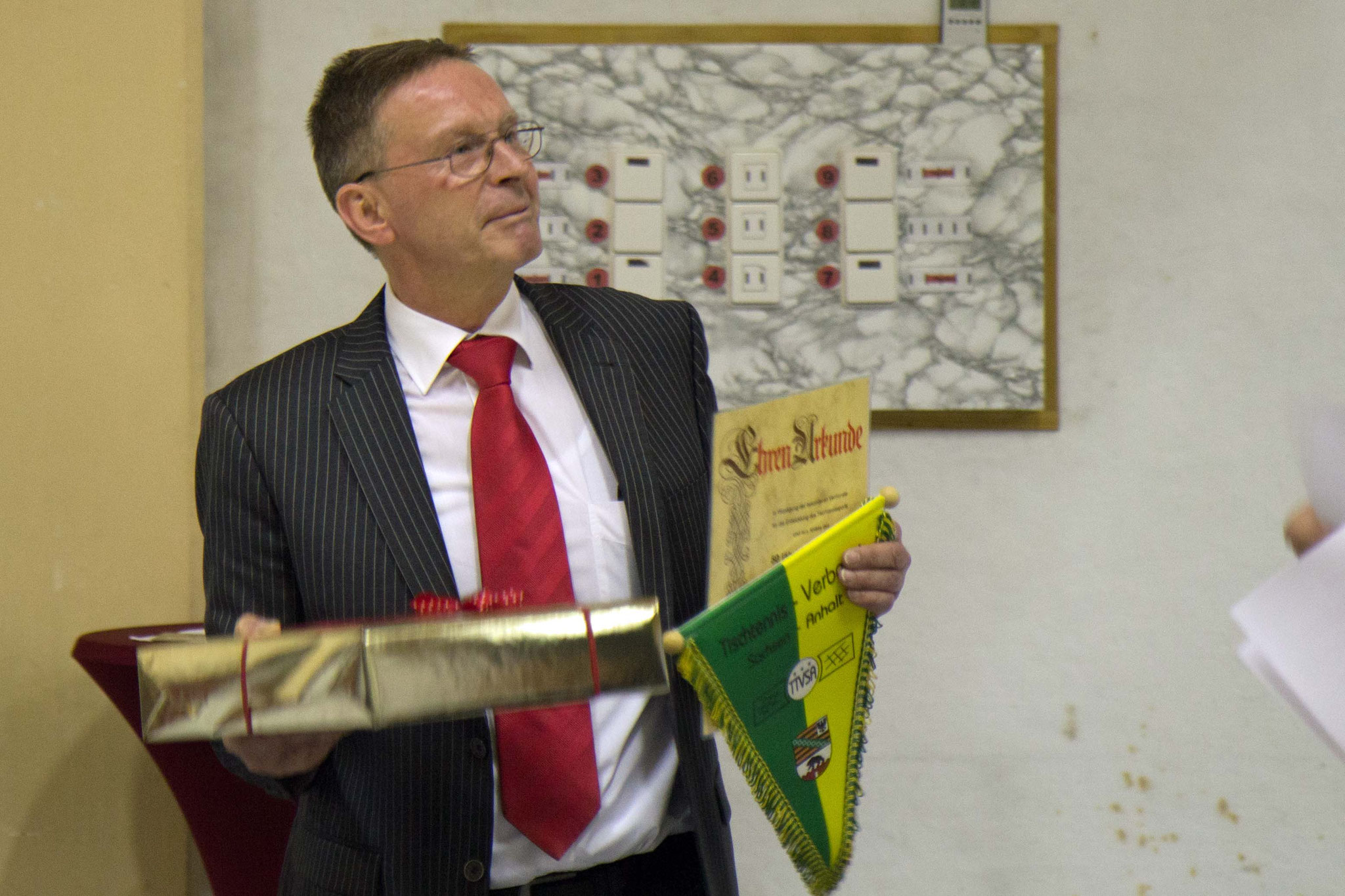 Die Gastrede der Feuerwehr, die Robert Finger gehalten hat, fand großen Zuspruch. In Ihren Reden würdigten der Ehrenpräsident des TTVSA, Reiner Schulz und der Vorsitzende des Kreises (KVTT), René Richter, die Entwicklung des Vereins. Dietmar Krüger, Peter Taube und Konrad Richter wurden vom Landesverband (TTVSA) und Kreisverband Tischtennis ausgezeichnet.